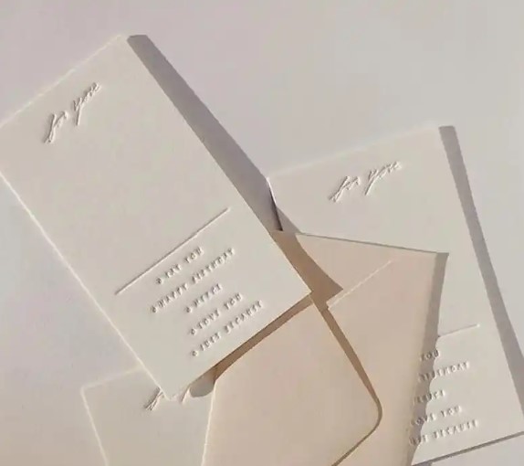 为什么选择素压凹?因为简约高级,素压凹的效果干净利落,没有多余的修饰,适合追求极简风格的设计。并且手指触摸时能感受到细微的凹凸变化,增加产品的互动性和记忆点。而且无论是光滑的铜版纸,还是粗糙的特种纸,素压凹都能呈现出不同的质感。素压凹工艺在高端设计中非常受欢迎,比如:奢侈品包装、书籍装帧、品牌名片等。