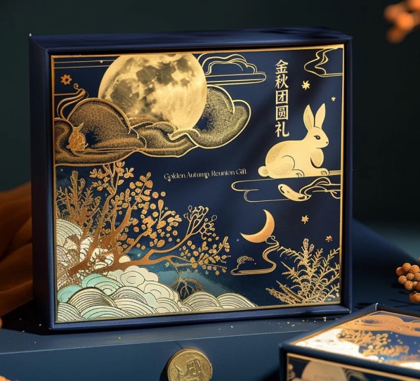 烫金/银:这种工艺主要用于突出重要的图案、文字或线条。通过加热的模具将金属箔(金箔、银箔或其他颜色箔)压烫转印到礼盒表面。烫印部分瞬间呈现出闪亮的金属光泽,极为醒目。无论是烫印品牌Logo、公司名称,还是中秋特有的祥云、满月、玉兔等图案,都能立刻提升礼盒的视觉档次,营造出经典而奢华的感觉,特别适合烘托节日的高端氛围。